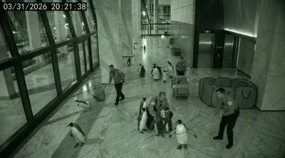 A Chicago-based tech firm discovered their offices overrun with live penguins after surveillance cameras were looped for ninety minutes. Authorities are searching for a person of interest with a familiar history.
