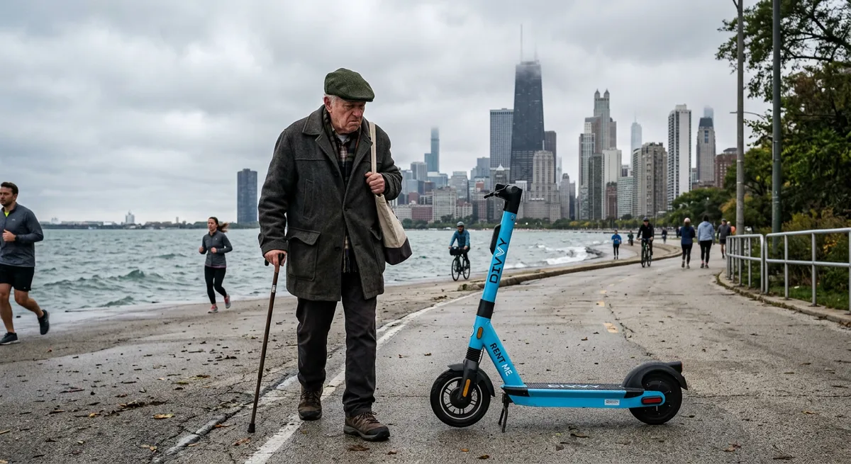 The people riding them are worse. They come flying down the sidewalk at fifteen miles an hour with no helmet and the spatial awareness of a golden retriever, weaving between pedestrians like they’re in some kind of video game where the points don’t matter and neither does anyone’s kneecaps. I’ve been nearly hit four times this month. Four times. I survived sixty Chicago winters and I’m going to be taken out by a twenty-six-year-old in joggers doing twelve on a rented scooter? Absolutely not.