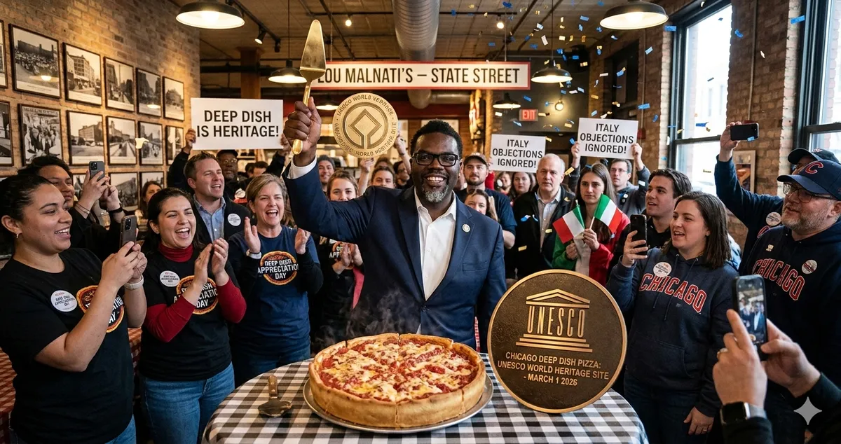 Chicago Mayor Brandon Johnson held a celebratory press conference at Lou Malnati’s on State Street, where he declared March 1st “Deep Dish Appreciation Day” and announced that the city would be commissioning a 40-foot bronze sculpture of a pizza slice for Daley Plaza. “This is what happens when you believe in cheese,” the mayor said to thunderous applause. “This is Chicago’s moment.” He also announced plans to establish a Deep Dish Preservation Fund through the Office of Budget and Management.
