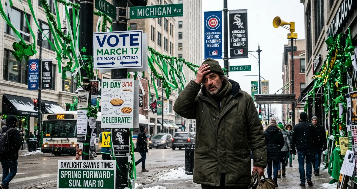 Let me walk you through what has happened in the last fourteen days, because I think it’s important for the record. On March 1st, Casimir Pulaski Day, I was off work, which was nice, except my granddaughter had school because CPS doesn’t observe it anymore, so I spent the day driving her around and explaining who Pulaski was, which I did poorly. On March 8th, my buddy Carmine’s kid had a birthday party. On March 9th, Daylight Saving Time kicked in and I lost an hour of sleep, which at my age is not a minor inconvenience — it is a medical event. The clocks changed. The Brown Line schedule shifted. My coffeemaker, which is not smart and which I refuse to replace, showed the wrong time for three days because I forgot how to set it. On March 10th, tornadoes hit Kankakee. Tornadoes. In March. With hailstones the size of softballs. I lived in this city for sixty-some years and I do not remember March having tornadoes and yet here we are, dodging funnel clouds between Pulaski Day and St. Patrick’s.