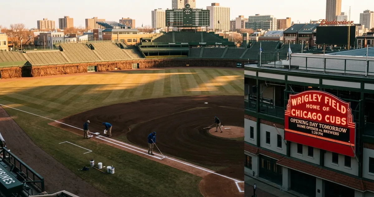 The grounds crew arrives before dawn. They have been here already, of course — they’ve been here for weeks, aerating and reseeding and coaxing the sod into the particular shade of green that looks natural on television but is, in reality, the product of horticultural decisions so precise they border on philosophy. But the day-before work is different. The day-before work is ceremonial. The baselines are painted with a whiteness that will not survive the second inning. The batter’s boxes are chalked with the care of a calligrapher. The pitcher’s mound is groomed to a regulation height of ten inches, a number that Wrigley has always found dignified, though it would never say so.
