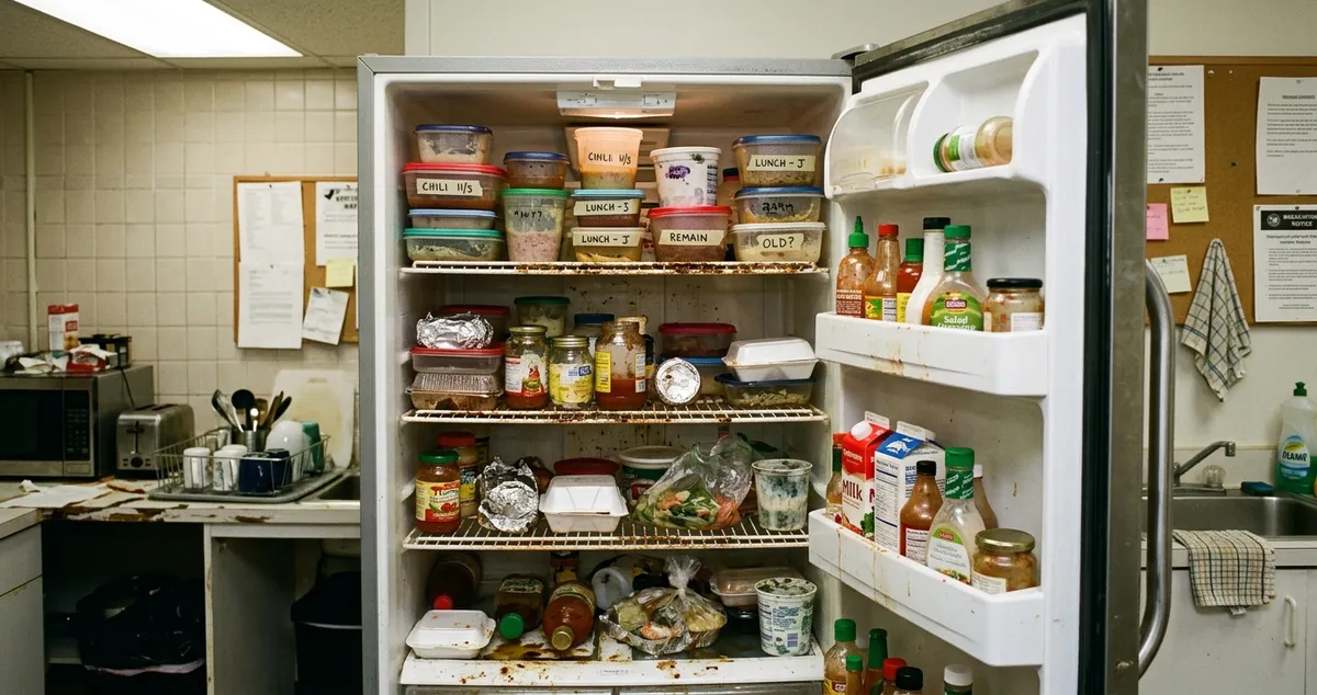 This reporter, who placed his own carefully labeled lunch in the fourth-floor refrigerator of The Windy City Dispatch this morning — his first morning, if that wasn’t clear — found the story both fascinating and cautionary. The office fridge is a shared space, a social contract, a commons. And like all commons, it is subject to tragedy.